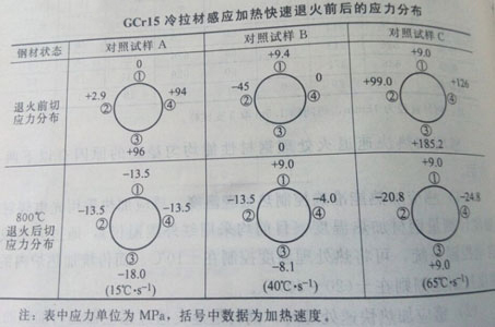 冷拉軸承鋼材采用高頻爐進行感應加熱快速退火熱處理,其內應力分布狀況如何呢?